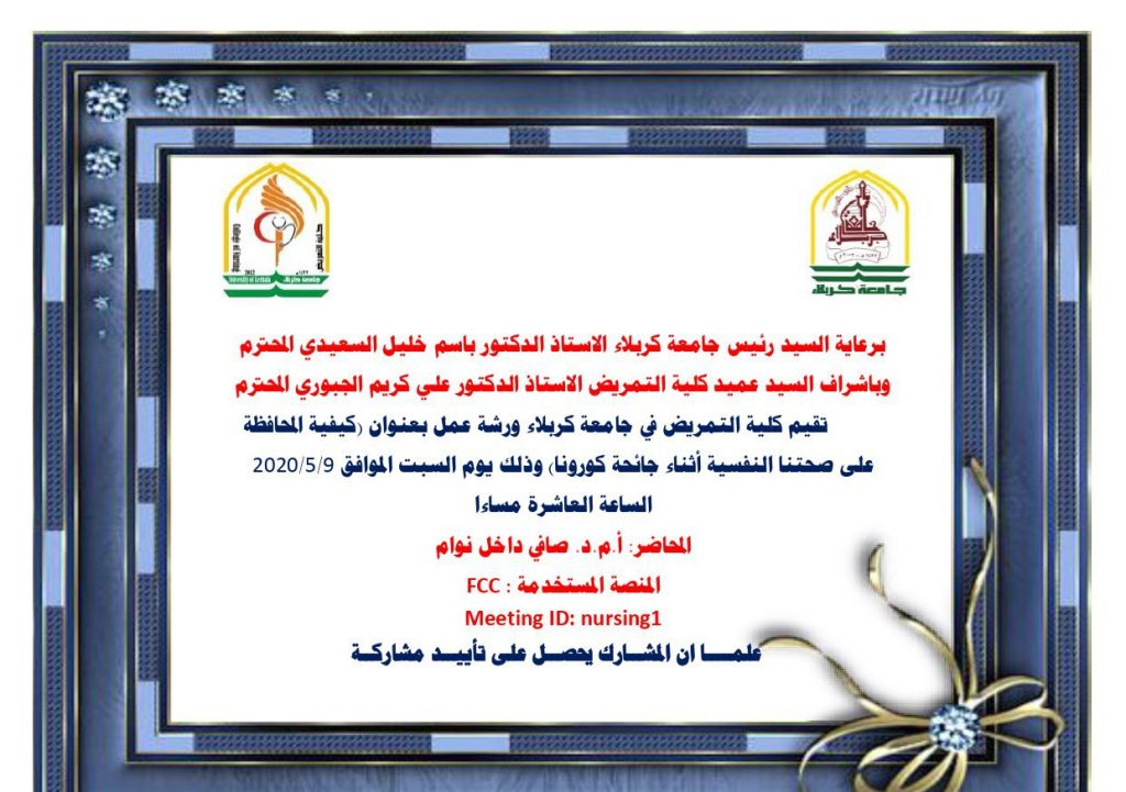 ورشة عمل بعنوان (كيفية المحافظة على صحتنا النفسية اثناء جائحة كورونا )