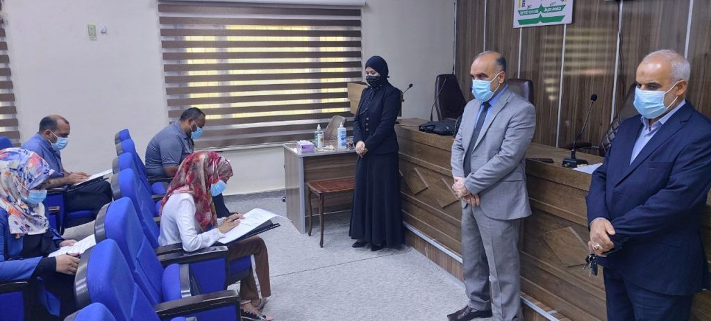 باشراف مباشر من الاستاذ الدكتور علي كريم الجبوري واعضاء اللجان الامتحانية تستمر اليوم الاثنين الموافق ٢/٨/٢٠٢١ امتحانات طلبة الدراسات العليا للفصل الثاني للعام الدراسي ٢٠٢٠/ ٢٠٢١ حضوريا للمادة الاحصاء الصحي مطبقين خلالها مقررات خلية الازمة من لبس الكمامات واستخدام المعقمات والتباعد وكذلك توفير بيئة مناسبة للامتحان من قاعات مكيفة وتوفير الماء البارد لطلبتنا الاعزاء متمنين لهم النجاح والتفوق العلمي الدائم خدمة لبلدنا العزيز.