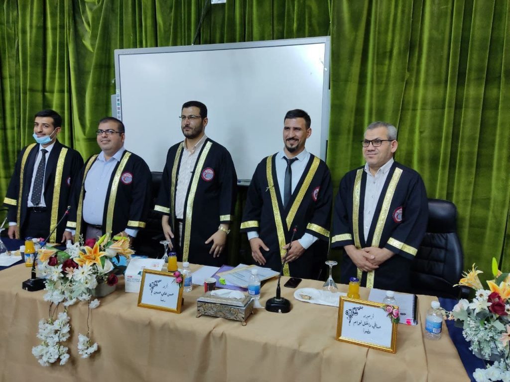 على القاعة الكبرى في جامعة بغداد/ كلية التمريض. واوصت اللجنة بقبول رسالة الطالب بتقدير (امتياز) اخذين بنظر الاعتبار الجهود العلمية المبذولة من الطالب ودفاعه عن رسالته والمصادر العلمية المعتمدة. فالف مبروك للطالبة ولاساتذتنا الاعزاء.