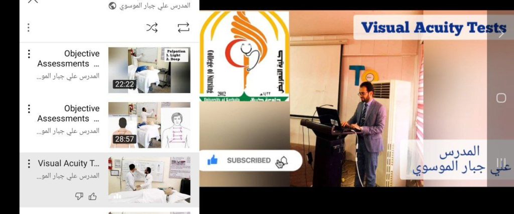 التدريب العملي لمادة التقييم الصحي والفحص الجسمي المرحله الثانيه وتناولت المحاضرة فحوصات العين الخاصة بحدة ودرجة النضر وكيفية الفحص السريري لها