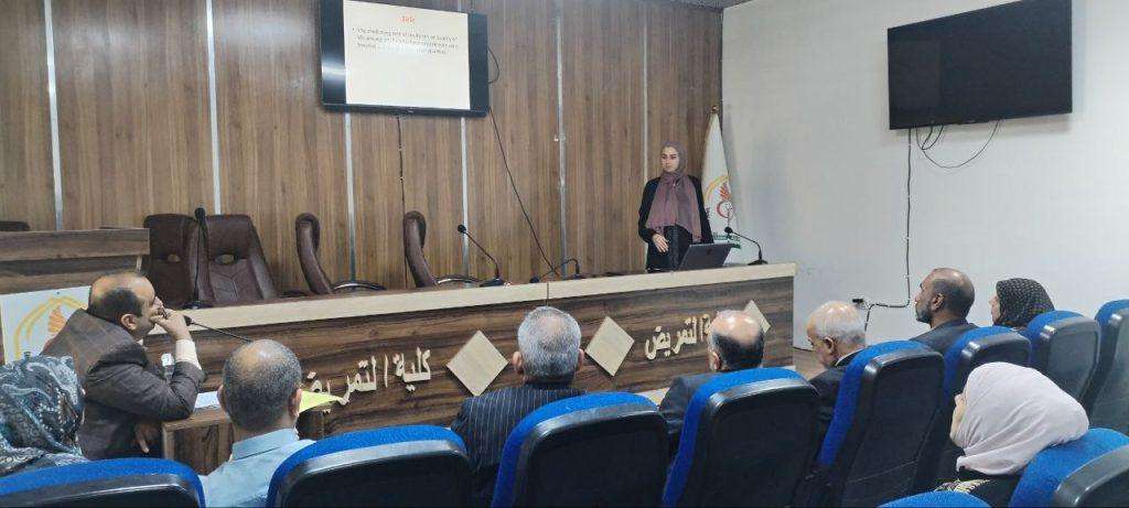 بحضور السيد عميد كلية التمريض جامعة كربلاء الأستاذ المساعد الدكتور سلمان حسين فارس الگريطي والأستاذ المساعد الدكتور حسن عبد الله عذبي معاون العميد للشؤون العلمية والدراسات العليا في كلية التمريض وعدد من رؤساء الفروع العلمية والتدريسيين جرى اليوم الأحد الموافق ٦ تشرين الأول ٢٠٢٤ مناقشة سمنارات عناوين رسائل طلبة الماجستير باجواء علمية رصينة وهادئة ، كما جرى خلال الجلسة مناقشة الطالبة اللبنانيه أماني بلال أيوب عبر تقنية “اون لاين” للضروف العصيبة التي يمر بها الشعب اللبناني الشقيق .