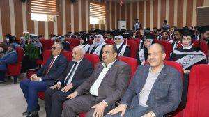 حيث بدأت الفعالية بتلاوة آيات من القرآن الكريم و عزف النشيد الوطني وقراءة سورة الفاتحة على ارواح الشهداء اعقبها كلمة السيد عميد كلية التمريض التي عبر فيها عن فخره بتخرج دفعة جديدة من الممرضين مؤهلين علميا وعمليا قادرين على تقديم الخدمات الصحية للمواطنين ، مؤكداً على أهمية رسالتهم الإنسانية في المؤسسات الصحية ودورهم الفعال في خدمة المجتمع.