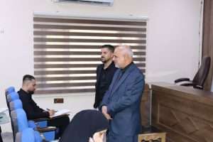 وشهدت القاعة الامتحانية زيارة ميدانية للأستاذ المساعد الدكتور سلمان حسين فارس الگريطي عميد الكلية، وبرفقه السيد معاون العميد للشؤون العلمية الاستاذ المساعد الدكتور حسن عبدالله عذبي الذي اطّلع على مجريات الامتحان، مؤكداً على أهمية توفير بيئة أكاديمية داعمة تضمن أداءً علمياً متميزاً للطلبة. كما أثنى على الجهود التي تبذلها اللجنة الامتحانية والكادر التدريسي والإداري في إدارة العملية الامتحانية وفق أعلى معايير الجودة، وتعكس هذه المتابعة المستمرة التزام الكلية بتعزيز مسيرة الدراسات العليا .