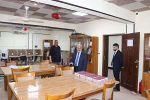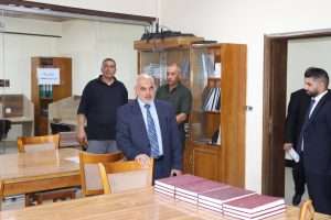 تفقد السيد عميد كلية التمريض في جامعة كربلاء الأستاذ المساعد الدكتور سلمان حسين فارس الگريطي مكتبة الكلية للاطلاع على واقعها والخدمات التي تقدمها للطلبة، بمرافقة معاون العميد للشؤون العلمية، الأستاذ المساعد الدكتور حسن عبد الله عذبي.