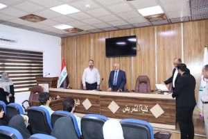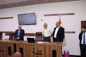 وخلال كلمته، أكد السيد العميد على أهمية الالتزام بالدوام الرسمي والجدية في تلقي العلوم والمعارف، مشدداً على دور الطلبة في رفع اسم الكلية والجامعة من خلال التفوق العلمي والسلوك المسؤول. كما أشار إلى حرص عمادة الكلية على توفير البيئة التعليمية الملائمة والدعم المستمر لمسيرة الطلبة الأكاديمية.