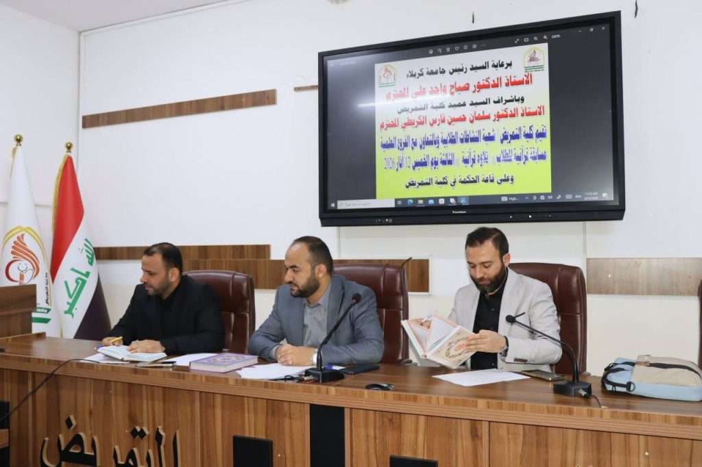 وشهدت المسابقة حضور السيد معاون العميد للشؤون العلمية الأستاذ المساعد الدكتور حسن عبدالله والسيد معاون العميد للشؤون الإدارية الأستاذ المساعد الدكتور غزوان عبد الحسين عبد الواحد و عدد من السادة التدريسيين وجمعاً من الطلبة، حيث تأتي هذه الفعالية ضمن الأنشطة الثقافية التي تحرص الكلية على تنظيمها بهدف تنمية المواهب الطلابية وتشجيع الطلبة على الاهتمام بتلاوة القرآن الكريم وتعزيز القيم الدينية والأخلاقية في الوسط الجامعي.
