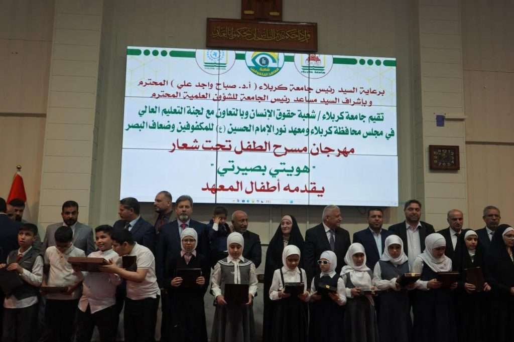 حضور السيد العميد الاستاذ الدكتور سلمان حسين فارس الكريطي فعاليات مهرجان مسرح الطفل الذي نظمته جامعة كربلاء بالتعاون مع لجنة التعليم العالي في مجلس المحافظة ومعهد نور الإمام الحسين (عليه السلام) للمكفوفين وضعاف البصر التابع للأمانة العامة للعتبة الحسينية المقدسة.